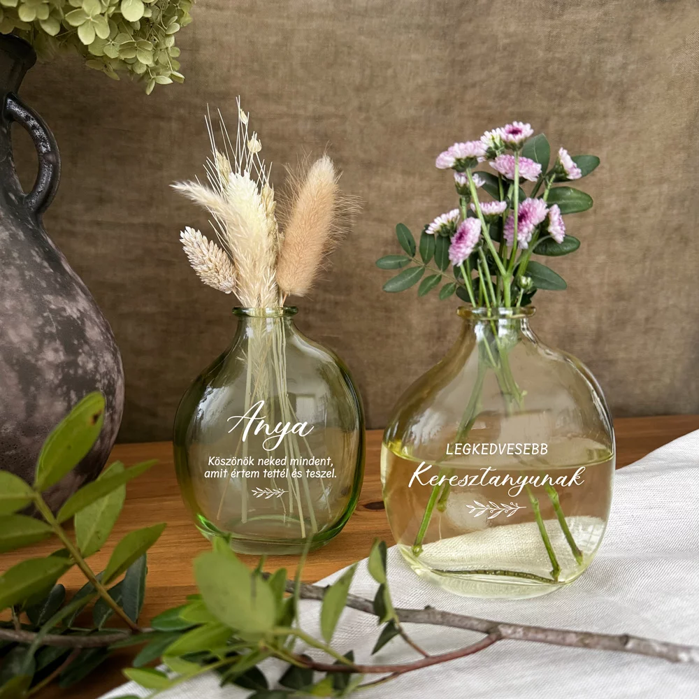 Személyesítsd meg ezt az üvegvázát névvel, és ha szeretnéd, akkor még egy pár szavas üzenettel. Így egy igazán személyes ajándékot tudsz adni szerettednek.