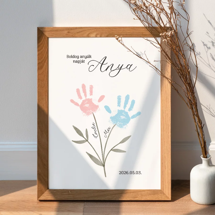 Örökítsd meg a fontos pillanatokat, pl. az (első) anyák napját! Válassz az opciók közül és szabd személyre a plakátot. Otthon már csak a kézlenyomato(ka)t kell elkészítened a tintamentes nyomdával, aminek köszönhetően nem kell összefestékezned a babád kezét. Elkészítése egyszerű, gyors és tiszta lesz.